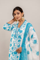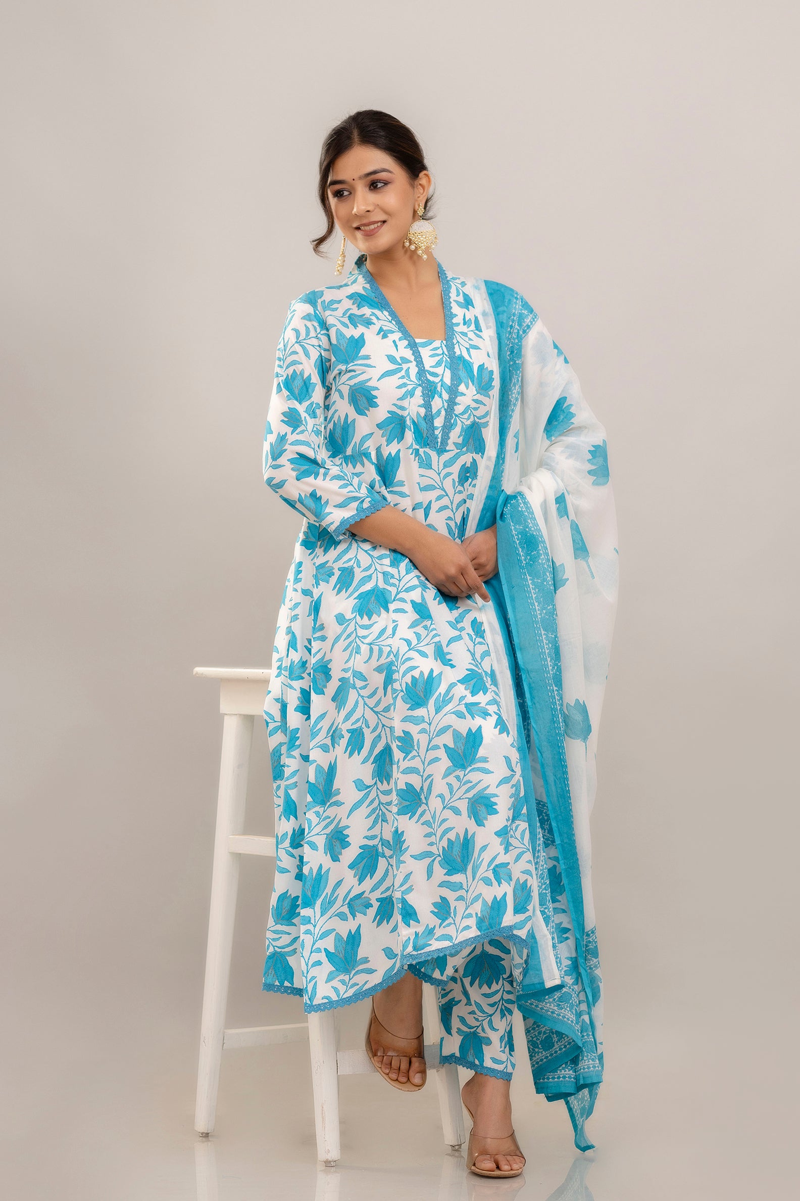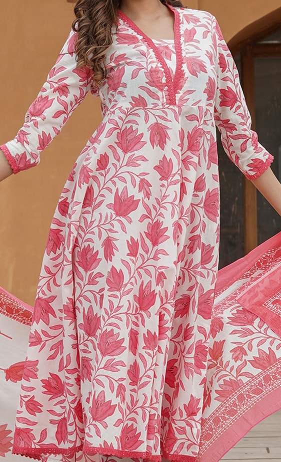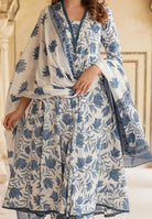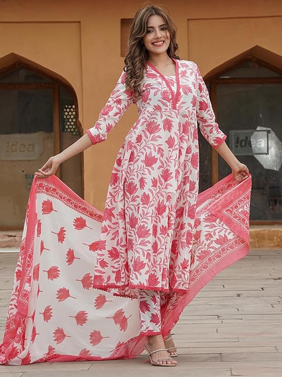 - Generic Name: PARTHVI Women's Printed Anarkali Kurta With Palazzo & Dupatta Set (Medium, White & Blue)