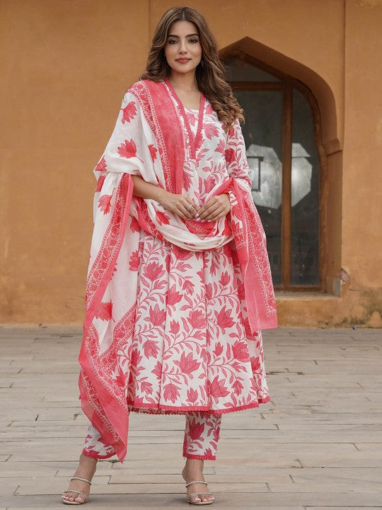 PARTHVI Women's Printed Anarkali Kurta With Palazzo & Dupatta Set