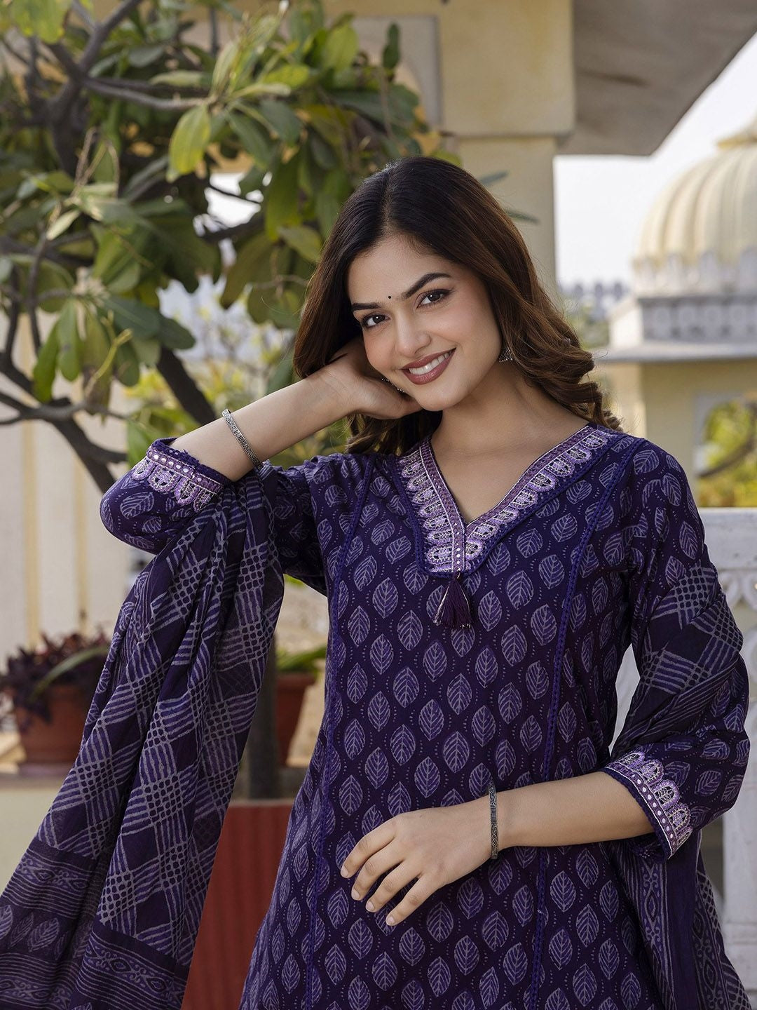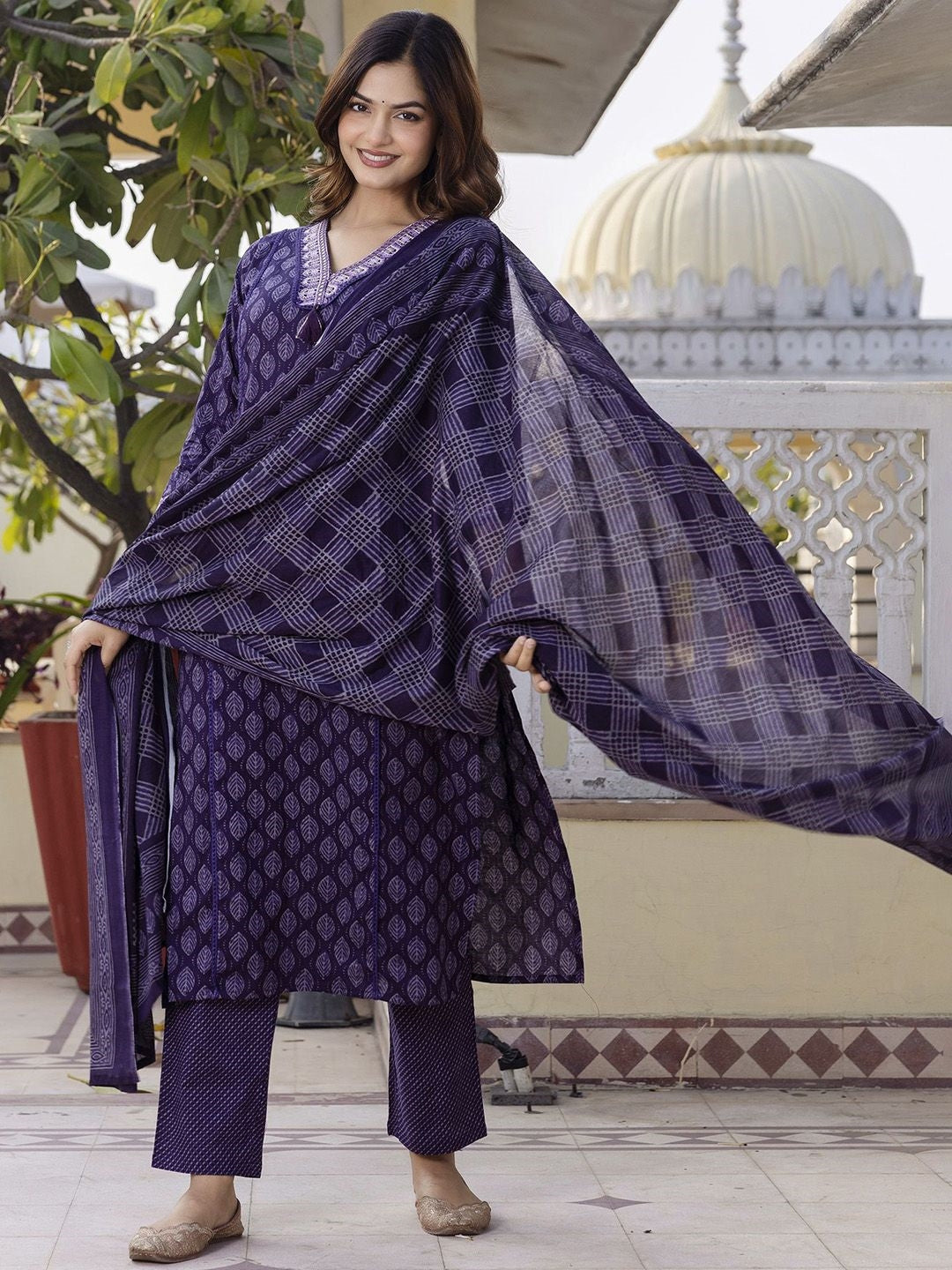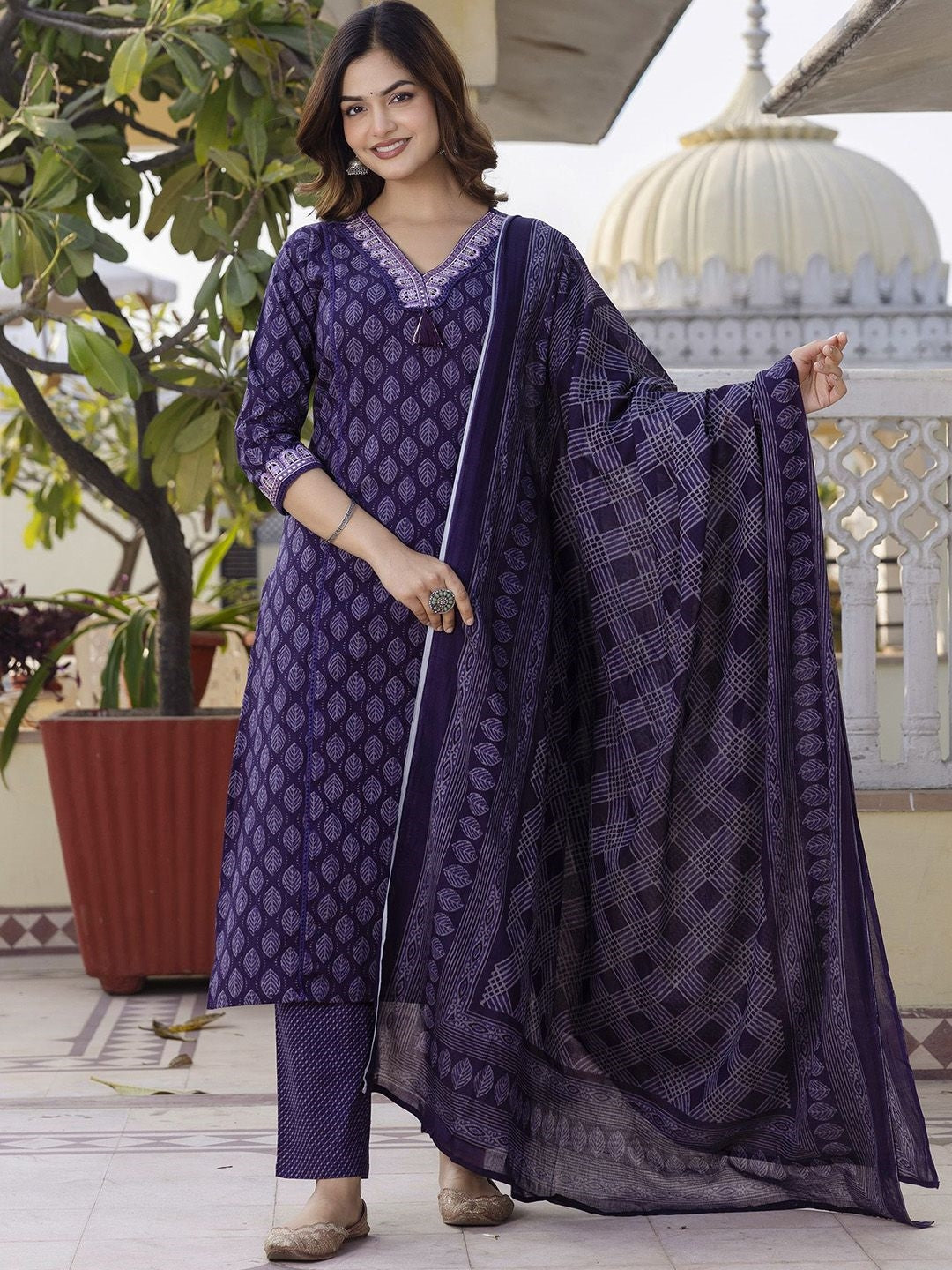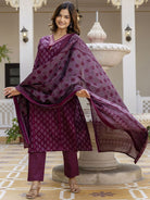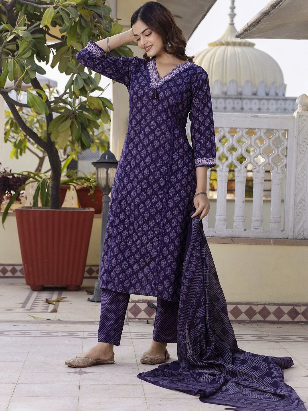 Women's Pure Cotton Printed Handwork Kurta with Pants & Dupatta Set