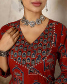 Ethnic Motifs Printed Mirror Work Pure Cotton Kurta With Trousers With Dupatta