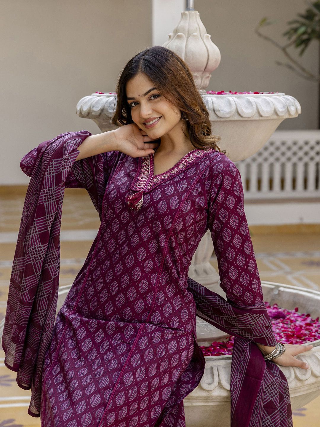 Elevate your ethnic wardrobe with this exquisite 3-piece kurta set designed for timeless elegance and comfort. Crafted from pure cotton, the ensemble features intricate handwork and charming prints, perfect for festive occasions, traditional gatherings, or elegant casual outings.